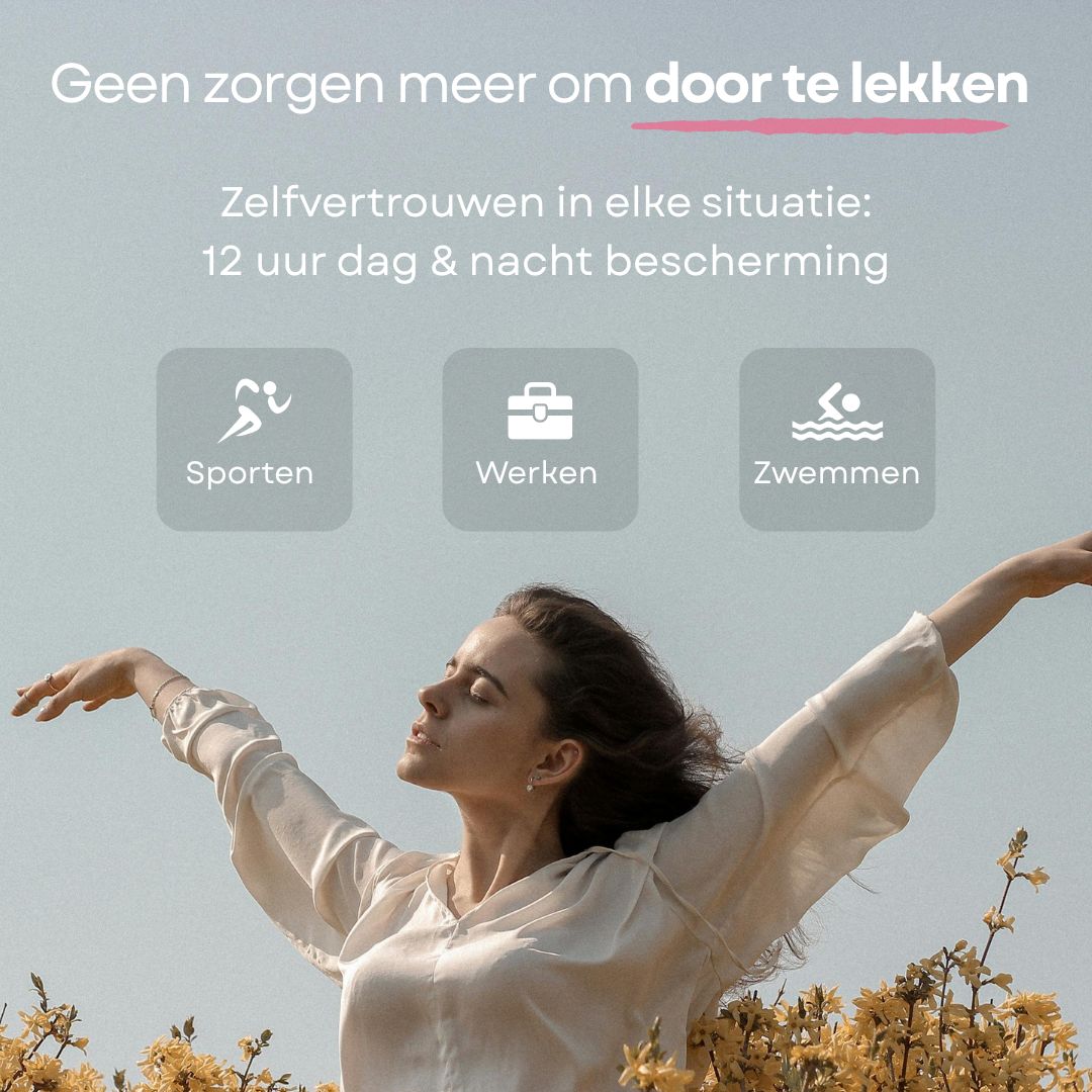 Bis zu 12 Stunden Schutz, Tag und Nacht. Fühlen Sie sich frei, schwimmen zu gehen, zu wandern, Rad zu fahren, zu laufen, zu schlafen oder sogar ungestörten Sex zu genießen. Schließlich gehört die Periode zum Leben – und die Intimität während der Periode auch! ;)